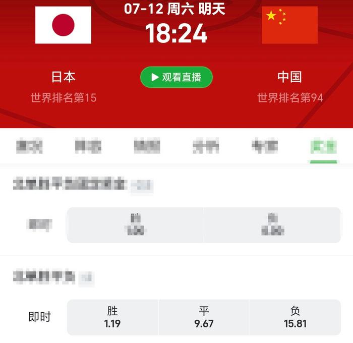 赛前,相关机构已经提前给出了数据分析,更看好日本轻松取胜,其中获胜赔率1.19更低,国足的赢球赔率为15.81。