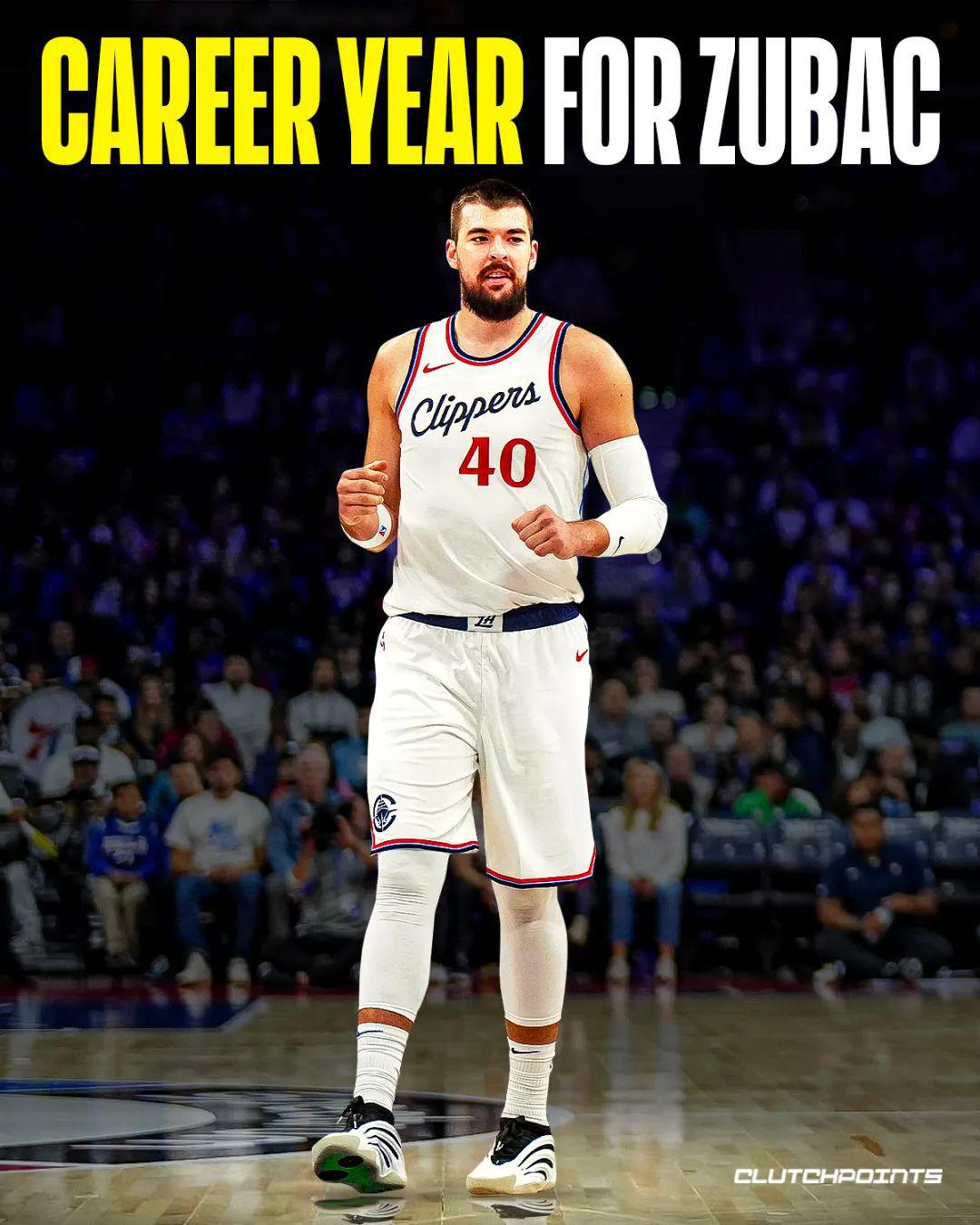 常规赛,祖巴茨一共为快船出战了80场比赛,场均上场32.8分钟,能拿下16.8分12.6篮板2.7助攻1.1盖帽,投篮命中率62.8%,真实命中率64.1%,他的得分、篮板、助攻三项数据都是生涯最高,其中篮板还可以排在联盟第四。